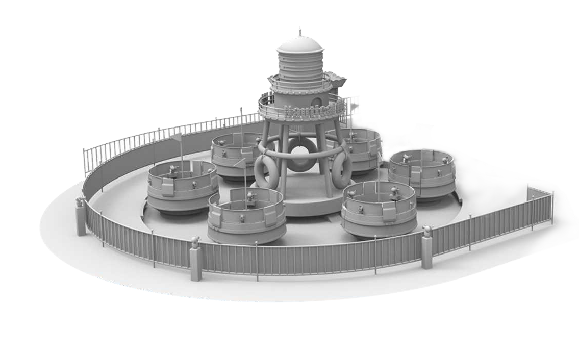 航海?戰是以海洋?戰為主題的轉?類親?設備。巧妙利?中?燈塔回轉?撐連接轉臂帶動艙體公轉,同時圍繞艙體??中?軸線順時針和逆時針交替旋轉;每個船艙設有4個?槍,各船之間可參與海戰與“?槍?”互相射擊,使在巨浪旋轉中的親?海戰更加激烈有趣。